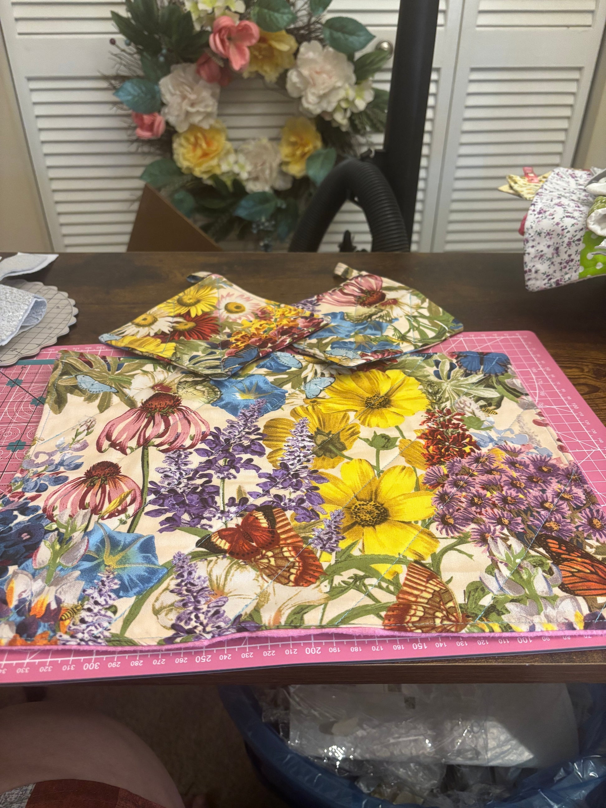 These are made for 9”x13” dishes and are perfect! I make them reversible so you can choose 2 fabrics so that you can change themes easily, whether you want a solid and a print, 2 different holiday patterns, different sports teams if you’re “a house divided”. I used insulated lining, doubled facing both directions as well as a layer of batting in between so you can feel confident your beautiful furniture is protected! Same with the mini potholders which are perfect for carrying your 9”x13” by its handles! I don’t know about you but it seems like when I use full size potholders I inevitably get them on the food in the pan! 😂